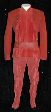 A costume featured in various seventh season episodes of Star Trek: Deep Space Nine. A Starfleet uniform in the style that made its first appearance in Star Trek VIII: First Contact; comprised of a long-sleeved, full-length black jumpsuit with gray quilted shoulders, a form fitting elastic waistband sewn inside with … |