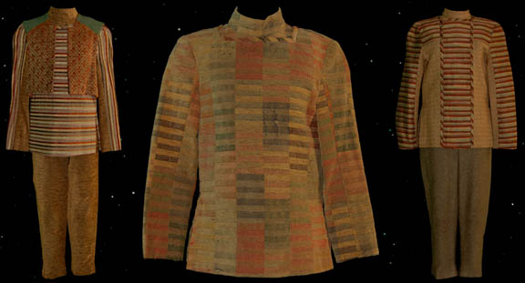 An incredibly ornate costume featured in the Star Trek: Voyager episode “Think Tank” for wear by “Fennim” (Steve Dennis), an empathic alien who was part of a crew of geniuses. His costume is exceptional in that it is composed of a gray jumpsuit with attached shoes and an impressively decorated … |