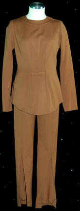 A brown Class-A Starfleet uniform featured in Star Trek I: The Motion Picture. The costume is brown trousers with a matching uniform top that comes with these unattached elements, a command white backed Epsilon IX assignment patch for the left breast and a bio-monitor. The costume is intended for female … |