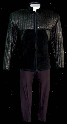 A costume featured in the Star Trek: Voyager episode “Remember”, wherein “Lieutenant B'Elanna Torres” (Roxann Dawson) vivid visions, in the form of dreams, from an unknown passenger on “Voyager”. The costume is for wear by Bruce Davison in the role of “Jareth, an Enaran leader during an event referred to … |