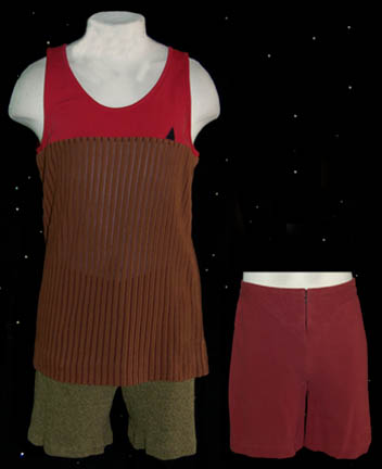A lot of costume aspects featured in various episodes of Star Trek: Voyager for wear by Garrett Wang in the role of “Ensign Harry Kim”, Operation Officer of the starship “Voyager”. The articles are similar to something that might be worn while exercising and are a red tank top with … |