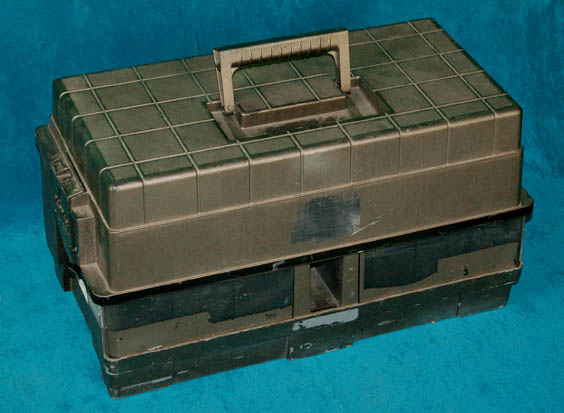 A metallic pewter painted carry box featured in various episodes of Star Trek: Enterprise. The item is actually a ‘Craftsman' toolbox with a pair of latches on the sides, a handle on the lid, six interior storage cavities mounted to the outer rim of the box, and a large center … |