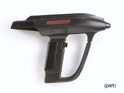 Two prop Romulan sidearms made from solid cast resin painted as dark metallic pewter -- <I>9in. long</I> -- made for <I>Star Trek: Deep Space Nine</I> (2) |