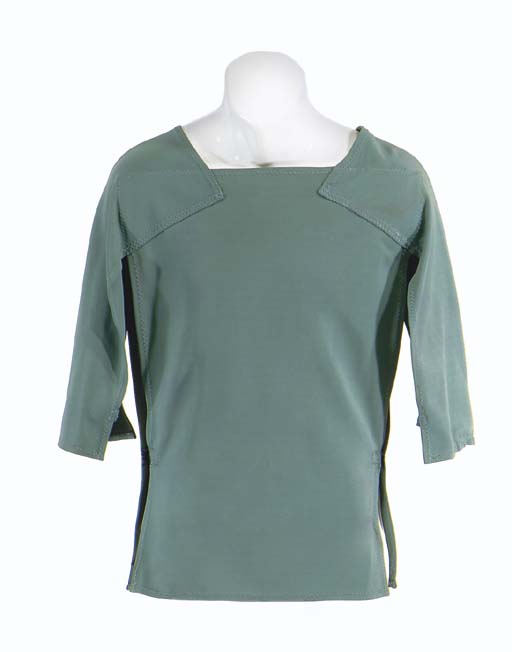 A costume featured in the Star Trek: Voyager episode "Remember" for wear by Athena Massey in her role as “Jassen” the Enaran who telepathically links with "B'Elanna Torres" (Roxann Dawson) to view her disturbing experiences. The costume is a two-tone green with long sleeves, v-neck collar, and a zipper/buttons/clasps running … |