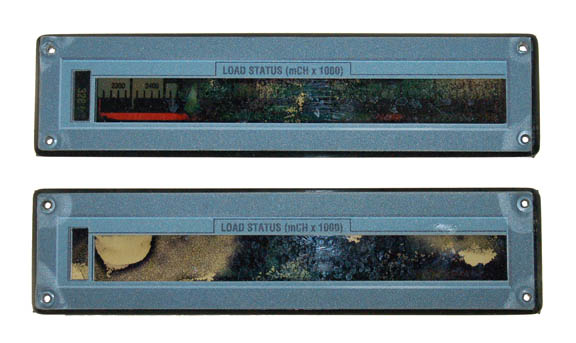 A pair of distressed ‘load status' readouts from the armory of the “Enterprise NX-01”. These items were painstakingly removed from large missile racks that were part of the armory set from Star Trek: Enterprise. These bays featured large missiles that were housed within a wall inset and at the fore … |