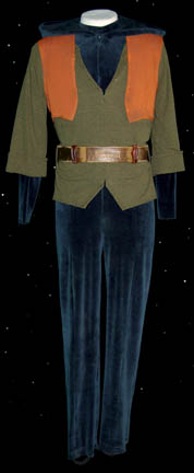 A costume made for actors portraying ‘Suliban' prisoners in a Tandaran detention camp in the Star Trek: Enterprise episode “Detained”. The costume is comprised of a blue hooded velour jumpsuit with a green top, and an orange vest. The costume comes with a leather belt with metal details and a … |