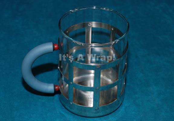 A prop drinking glass like those appearing in the Star Trek: Deep Space Nine episode “What You Leave Behind”. The item is an “Alessi” name brand French made drinking glass with a removable metal grid work around the outside that features a blue rubberized handle. The item measures approx. 4 … |