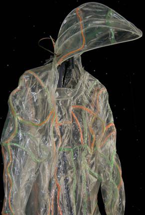 A Romulan costume featured in various episodes of Star Trek: Deep Space Nine for wear by Tal'Shiar operatives. The costume is a full length black thermal jumpsuit with a square patterned quilted uniform jacket top. The top features collar line zips and iridescent silver square pattern. The costume is completed … |