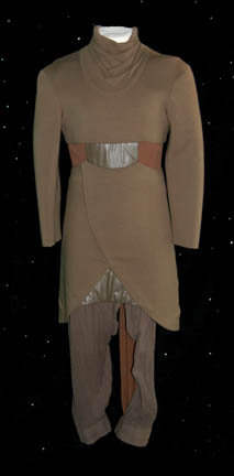 “Jakin” (Bill Mondy) was a captain of the T'Lani fleet during the Deep Space Nine episode “Armageddon Game”. This is his scientist costume and includes a long sleeve brown ribbed jumpsuit with the thumbs, ring and pinky fingers built in. The flowing gray/green pants are crimped with cuffs at the … |