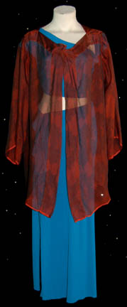 The Garan are a race from the Delta Quadrant featured in two Star Trek: Voyager episodes. This costume was worn by the Garan civilian trader “Onquanii” (Steve Dennis) in the episode “Warhead”. The sleeveless jumpsuit is blue with darker blue ribbed trim. The front section zips and snaps shut. Worn … |