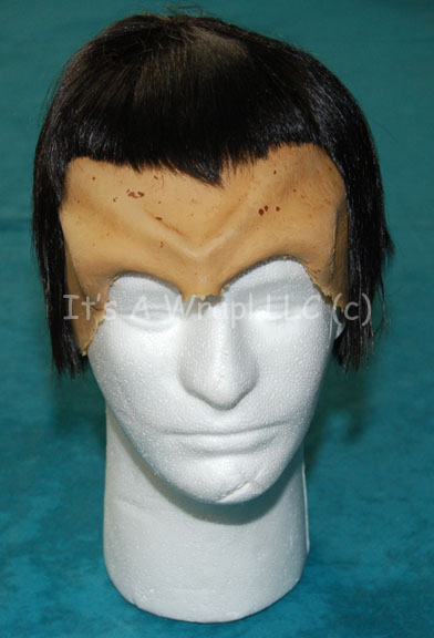 A special effects make-up application and wig made to represent Romulan characters in Star Trek X: Nemesis. The item is molded foam rubber made to represent the strong forehead ridges of the Romulan people, the item is actually quite soft and flexible. In excellent condition the item features a general … |