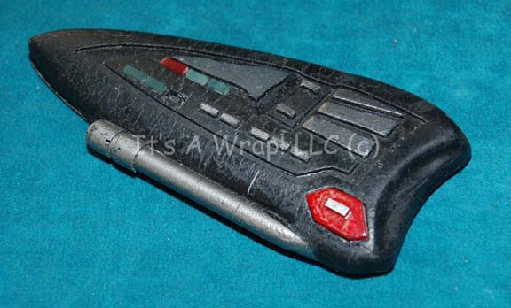 A prop item similar to those featured in various episodes of Star Trek: Deep Space Nine. This item is one of the Jem’Hadar tricorder/scanner devices that attach to their uniforms; it is made of sturdy foam rubber with textured accents meant to denote circuitry, red and gray painted details, and … |