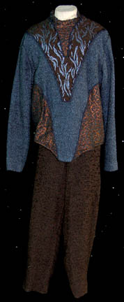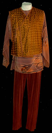 A costume featured in the Star Trek: Deep Space Nine episodes of “One Little Ship” and “Honor Among Thieves” for wear by “Gelnon” (Leland Crooke), a Vorta in the Dominion. The costume is green trousers with dark green square pattern, a plaid patterned undershirt with a pleated collar accent, and … |