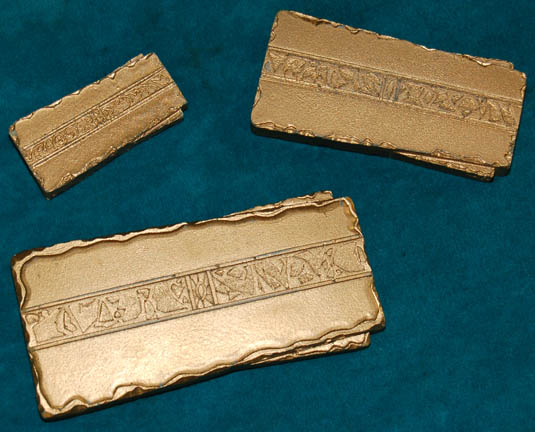 An impressive cast resin “synaptic scanner” used in various Star Trek episodes including Star Trek: The Next Generation, Deep Space Nine, and Voyager. The piece is painted metallic pewter with gold accents and faux green and red lights. Two bands of blue leather with gold thread join the two ends … |