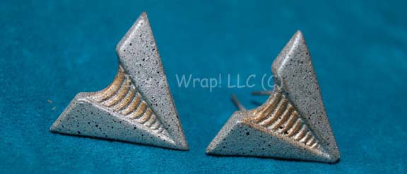 A pair of molded resin rank badges appearing in Star Trek feature films and some episodic television. The lot contains two metallic silver and gold colored badges with adhered wire backings that indicate the wearer to be an ‘ensign’. The items are made to be affixed to rank placements on … |