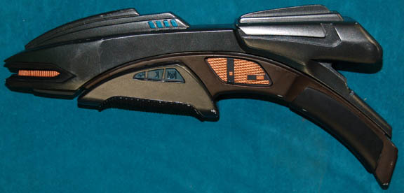 The Ferengi are a humanoid species native to the planet Ferenginar whose philosophy centers on the governing rule of personal profit and gain. This is a solid cast resin prop Ferengi disruptor rifle made for Star Trek: Deep Space Nine painted metallic pewter with black, metallic copper and blue accents. … |