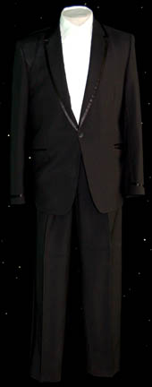 A tuxedo featured in various episodes of Star Trek: Deep Space Nine like “Badda-Bing Badda-Bang” for wear by Avery Brooks in his portrayal of “Captain Sisko”. The tux is name brand with sewn in an original manufacturers tag by ‘Sy Devore' of Sherman Oaks, California, with two white tuxedo shirts … |