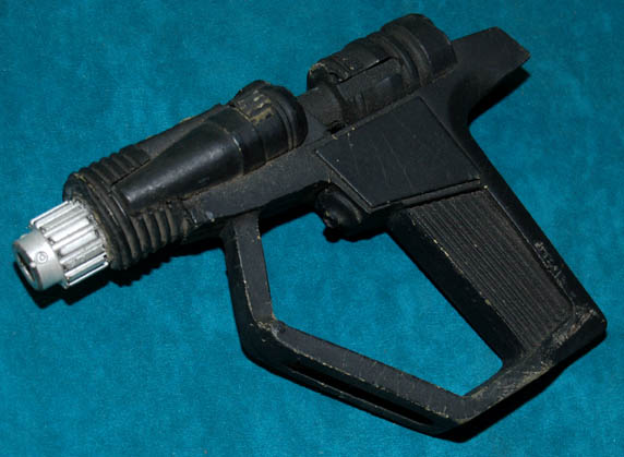 A prop alien energy weapon featured in various Star Trek episodes like Deep Space Nine's “Who Mourns for Morn?” The item is sturdy molded foam rubber with a black finish and a metallic silver painted emitter tip. An opaque accent is embedded in the top. The item measures approx. 7.5 … |