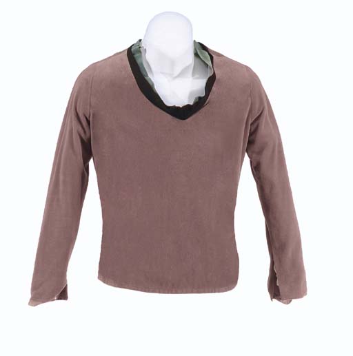 A velour <I>Star Trek: Original Series</I> pilot-style Starfleet uniform top, formerly sciences blue, now faded to mauve, with black series-style collar, zipper in back, and slits on cuffs -- believed to have been made for the <I>Star Trek: The Original Series</I> pilot episodes and subsequently modified for use in the … |