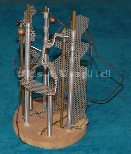 A visual effects model of cast resin and acrylic plastic, with fixed bottom-mounted rod used to attach model to motion-control equipment for visual effects filming, removable panel to midsection used to conceal access to electrical connections -- <I>36x25x10in.</I> -- used in several episodes <I>Star Trek: The Next Generation</I> and <I>Star … |