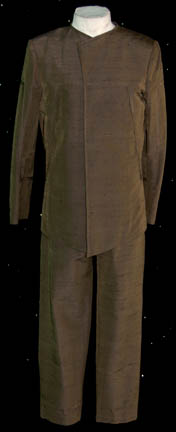 A costume featured in the Star Trek: Deep Space Nine episode “Equilibrium” for wear by “Yolad” (Harvey Vernon) a Trill musician whose brother carried the “Dax” symbiont for a time prior to its inclusion into “Jadzia Dax” (Terry Farrel). The costume is tan trousers with a tan tunic and vest. … |