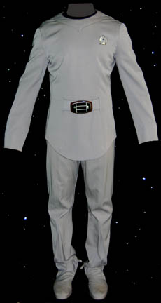 A gray Class-A Starfleet uniform featured in Star Trek I: The Motion Picture for wear by Stephen Collins in his portrayal of “Commander Decker”. The costume is gray trousers with attached shoes, the trousers show significant holes on the top of the right shoe and around the crotch, believed to … |