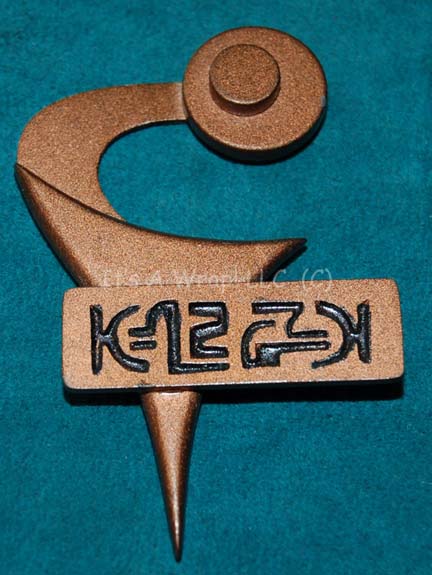 A reappearing prop item featured in 24th century Star Trek episodic television. The item appeared as an Angosian badge in the Star Trek: The Next Generation episode “The Hunted”, altered for later use on the crew of the marauder ship in the episodes “Gambit, Parts I and II”, and then … |