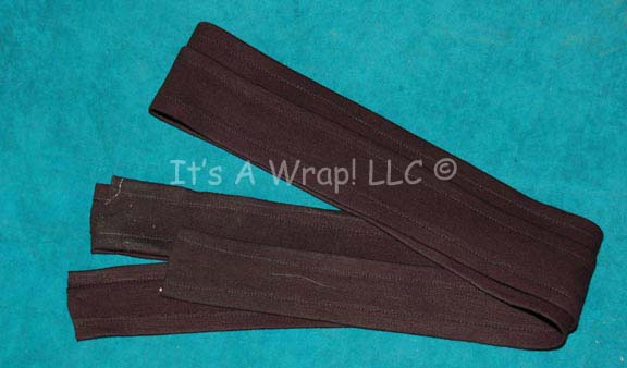 A pair of black fabric strips created to run the length of Starfleet uniform trouser legs appearing variously in Star Trek feature films and episodic television. The items measure approx. 62 inches long and are 2.25 inches wide. The sides are folded over and sewn for girth. |