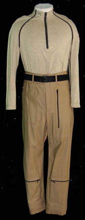 A costume featured in multiple Star Trek: Enterprise episodes like “Desert Crossing”, “Marauders”, and “The Breach” for wear by Connor Trinneer in his portrayal of “Commander Tucker”. This style of costume also appeared in the opening sequences of “Bounty”. The costume is an arid climate Starfleet uniform composed of three … |