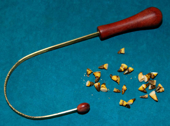 This unique chance find lot features “Dr. Phlox’s” (John Billingsley) Denobulan tongue scraper and his toenail clippings from the Star Trek: Enterprise episode, “A Night in Sickbay”. The tongue scraper is a gold colored piece of curved metal with a wooden handle and end piece. The curved metal has a … |