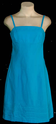 A costume featured in the dreams of “Commander Tucker” (Connor Trinneer) in the Star Trek: Enterprise episode “The Xindi” for wear by Erin Leigh Price as “Elizabeth Tucker”. The costume is a light blue button front dress with an embroidered hem and shoulder straps. The sewn in Enterprise tag reads … |