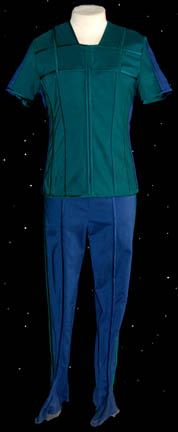 A costume featured in Star Trek II: The Wrath of Khan for wear by William Shatner during his portrayal of “Admiral Kirk” in scenes taking place in his San Francisco apartment on his birthday. The costume is dark purple trousers with elastic cuffs at the ankles, and a matching cropped … |