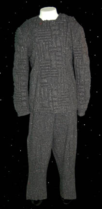 A two piece ‘Khazon' costume from the episode “Alliances” worn by Tom Morga while portraying the ‘First-Maje of the ‘Khazon-Pommar’ “Minnis”. Made up of dark gray pants with black elastic stirrups and suspenders, and a quilted uniform jacket that zips up the left side under the arm and features multiple … |