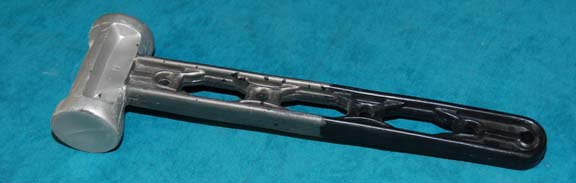 A prop mallet used as set dressing in the Star Trek: Enterprise episode “First Flight”. The item is a molded plastic hammer painted metallic silver with an unpainted black hand grip. The item measures approx. 13.5 X 3.75 X 2 inches diameter. |