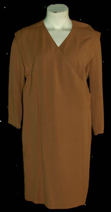A brown costume made up of pants, a shirt and a belt made for various episodes of Star Trek: Deep Space Nine for wear by a ‘Bajoran Acolyte'. The costumer’s tags both read ‘Bajoran Acolyte’. |
