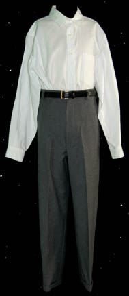 A costume featured in the Star Trek: Deep Space Nine episode “Equilibrium” for wear by Nana Visitor as “Major Kira” as part of a dinner party being held by “Commander Sisko” (Avery Brooks) for his command crew. The costume is a pair of jumpsuits made from orange colored legs and … |