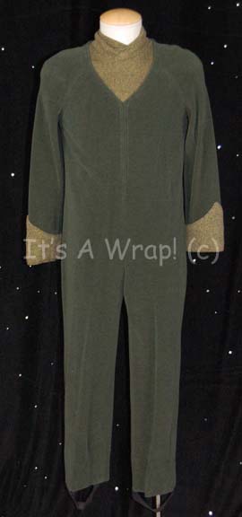 A costume featured in the Star Trek: Deep Space Nine episode “Vortex”. This costume is that of the Nikahri Exarch “Hadran”, it is a long-sleeved, full-length, dark-green jumpsuit featuring raised stripes down the front, sewn in, olive-colored, corduroy dickie with a second, false collar, matching accents around the cuffs and … |