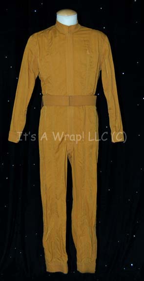 A Starfleet uniform jumpsuit featured in Star Trek: Enterprise for wear by Anthony Montgomery in his portrayal of “Travis Mayweather”. The costume is a blue jumpsuit with gold command division piping around the shoulders, multiple zippered pockets and Velcro size adjustments at the ankles and cuffs, with a zip up … |