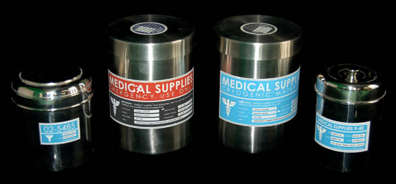 Dr. Phlox's sickbay onboard the NX-01 Enterprise during the Star Trek: Enterprise series was stacked full of containers including these four medical containers used as set dressing. This lot includes two metal containers with oblong clear plastic windows in the side complete with Starfleet “Medical Supplies” labels and lids; two … |