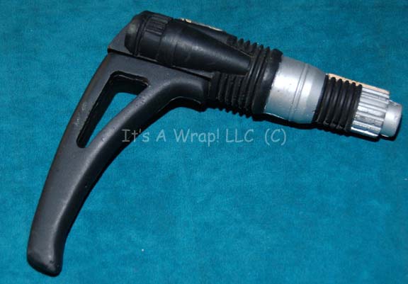 A prop molded rubber Varon-T disruptor like the one featured in the Star Trek: The Next Generation episode “The Most Toys”. The item is made from molded black rubber with painted metallic silver and gold accents. The hand grip is softer and flexible, but holds its shape, and is sturdy … |