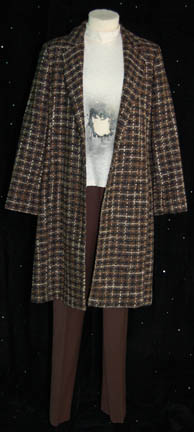 A costume featured in the Star Trek: Enterprise episode and part of the three part “Syrrannite” story arc, “The Forge”; wherein costume consists of a lightly distressed, long-sleeved, brown shirt featuring black stripes, a textured, square pattern all long the garment, large, accessory buttons down the front and a wrap-around … |