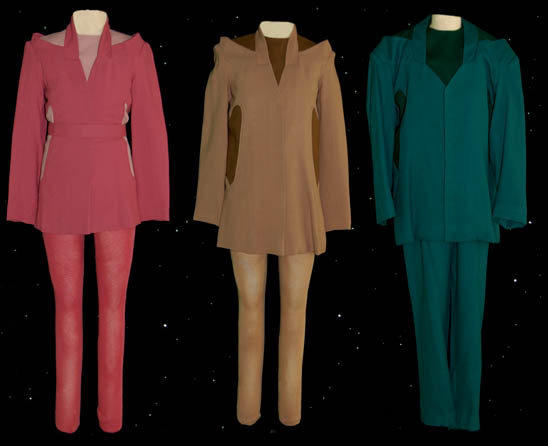 “Kira Nerys” (Nana Visitor) was a Bajoran female who was a Colonel in the Bajoran Militia and later a Bajoran liaison officer on Deep Space Nine. Her Bajoran uniform is a rose color jumpsuit with suede rust color shoulders and sleeves. The suede is stitched with black thread in a … |