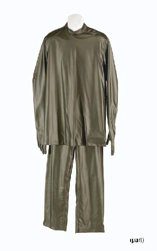 Three costumes worn by John Billingsley as Dr. Phlox on <I>Star Trek: Enterprise</I>, comprising: Phlox's surgical garb from "Broken Bow", with pants and gloves; Phlox's grey rubberized surgical garb with built-in gloves and pants; and the evil Mirror Phlox's jacket, pants, and belt from "In A Mirror, Darkly" (8) |