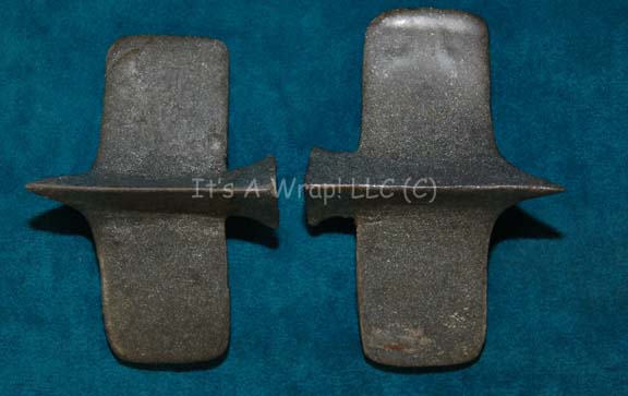 A lot of two costume elements like those seen variously on Star Trek episodic television. These items are gray, resin cast claw-like accents worn on the shoulder of Klingon uniforms in 24th century Star Trek. The items measure approx. 3 X 2 X 1 inches. |