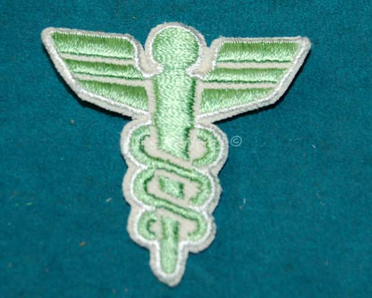 A costume element like those featured on the uniforms of Starfleet medical personnel in the first Star Trek feature film. This item is a light-green medical caduceus patch with white trim. The item measures approx. 3.75 X 3.75 inches. |
