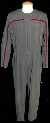 A Starfleet officer's uniform featured in the Star Trek: Voyager episode ‘Flashback” for wear by Jeremy Roberts in his portrayal of “Dimitri Valtane”. The costume is black trousers with gray division stripes on the outside seams with a gray long sleeved undershirt with a ribbed collar and cuffs, and a … |