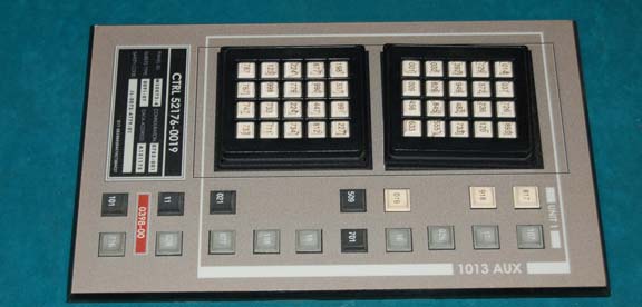 A piece of set dressing like those featured in various episodes of Star Trek: Enterprise. The item is a piece of smoked acrylic with beveled edges and a graphical application adhered to the face that features an inventory inscription that reads ‘CTRL 52176-0019’. Multiple rubber faux-buttons with numerical values, and … |