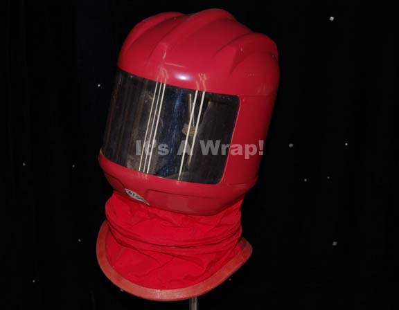 A costume helmet like those appearing in Star Trek IX: Insurrection for wear by stunt performer Brian Williams while portraying “Data” on the Bak’u planet. The item is a red injection molded helmet with a clear face shield, and ventilation at the top of the helmet and at the chin. … |