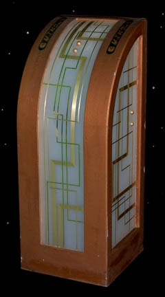 A piece of set dressing similar to that featured in 24th century episodes of the Star Trek involving the Ferengi. This item is a lighting source that would be sitting in the background in a room on a Ferengi ship and vaguely the shape of an elongated shark's fin featuring … |