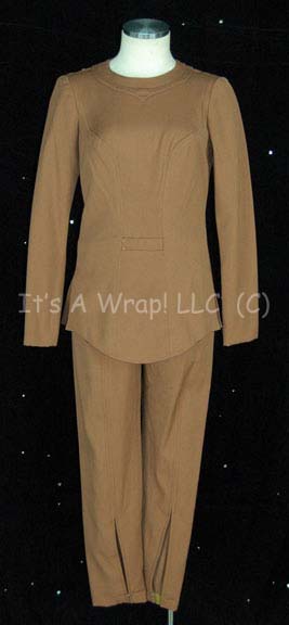 A brown, Class-A, Starfleet uniform featured in Star Trek I: The Motion Picture. The costume consists of brown trousers with a brown uniform top. The lot comes with these unattached items; a bio-monitor and a white backed Epsilon IX assignment patch indicating the wearer to be a member of the … |